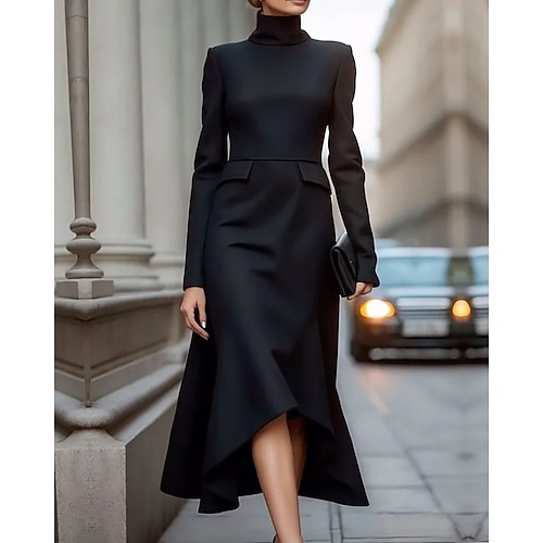 Per donna Abito Midi Abito nero Abito da Ballo Vestito da Festa Elegante Moda Moderno Festa serale Feste Occasione speciale Vestibilità regolare Semplice Manica Lunga Dolcevita Nero Vino Verde Estate