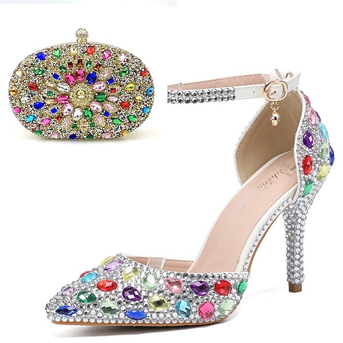Per donna Cocktail Club Feste Strass Cristallo Fibbia Stiletto Punta a Punta Moda Carino Lussuoso PU Fibbia Argento Rosso arancione Nero e Viola