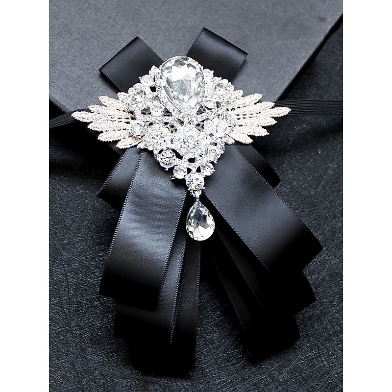 Men's Luxury Crystal Brooch Bow Tie - Elegant Ribbon Pin with Rhinestone Decoration, Formal Wedding and Party Accessories