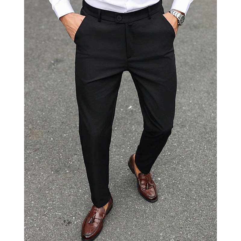 Men's Trousers Dress Pants Chinos Pocket Buttons Plain Comfort Formal Party Work Fashion Classic Style Black White Micro-elastic