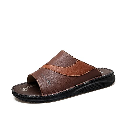 Sandali estivi casual da uomo in similpelle marrone, traspiranti, facili da indossare, ideali per vacanze, attività all'aperto e tempo libero quotidiano.