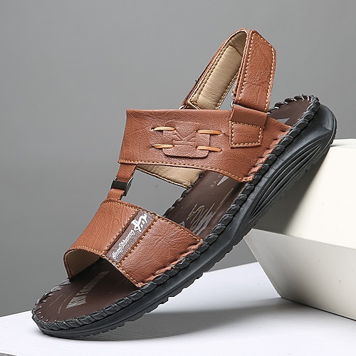 sandali da uomo in similpelle marrone con punta aperta, design regolabile per spiaggia, escursionismo e viaggi estivi