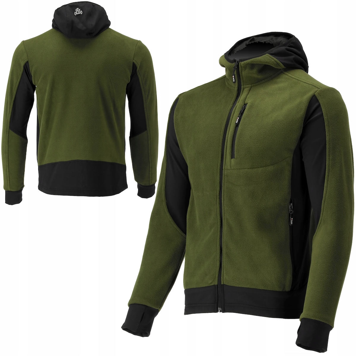 Fleece Kapuzenpulli, Hoodie mit Reißverschluss SARNA grün/schwarz Gr. L