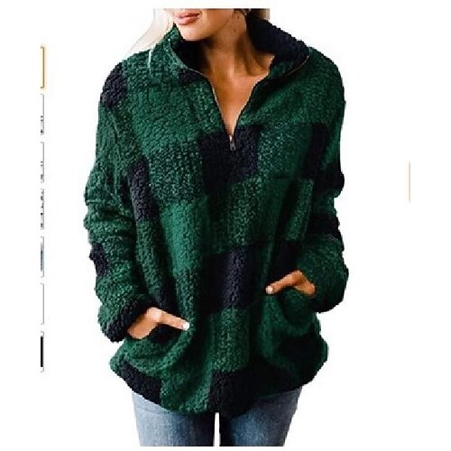 Per donna Giacca Sherpa Cappotto Teddy San Valentino Festa di San Patrizio Giorno di San Patrizio Autunno Inverno Cappotto Vestibilità comoda Sport Elegante Casual Giacca Manica Lunga Geometrico