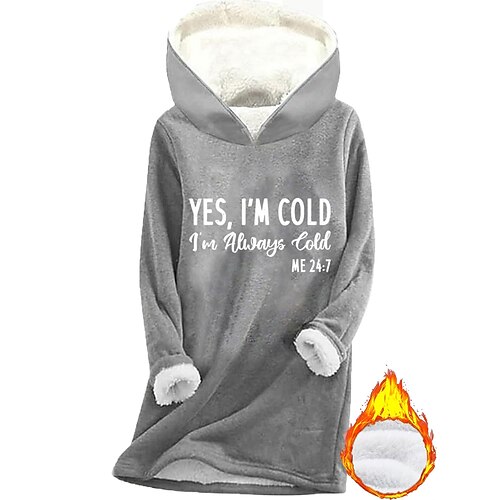 Per donna Felpa con cappuccio Grafico Lettera Caldo Casual Pile Sherpa Manica Lunga Con Cappuccio Top lunghi Streetwear Abbigliamento Quotidiano Casuale Stampato Rosa scuro Blu Grigio Autunno Inverno