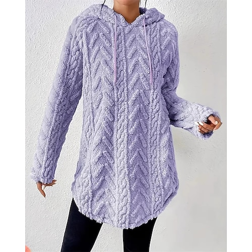 Per donna Felpa con cappuccio Semplice Streetwear Casual Pile Sherpa Manica Lunga Con Cappuccio Top Regolari Streetwear Ferie Coulisse Nero Bianco Rosso Viola Beige Autunno Inverno