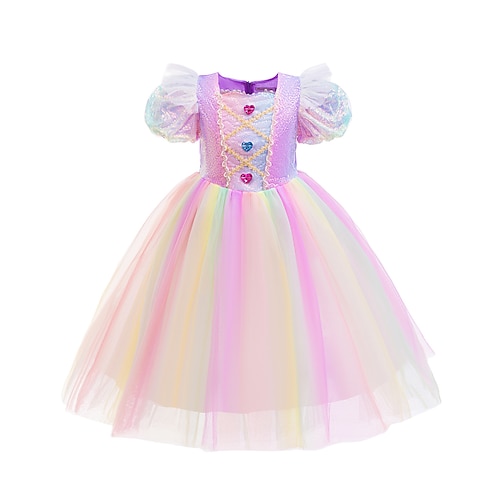 Bambini Ragazze Abito Tinta unica Manica Corta Matrimonio Feste Moda Carino Poliestere Abito con Paillettes Estate Primavera 4-12 Anni SB23A59PS08 SB23PS08A59ST210 SB23PS08A59ST284