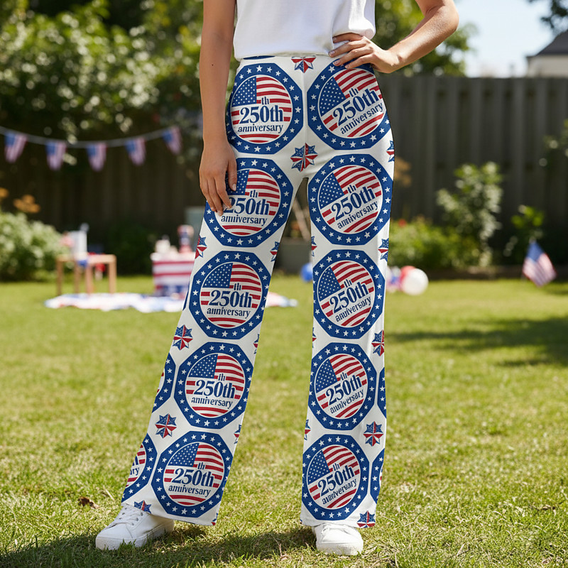 American 250 Retro Vintage 1970s Pants Wide Legged Pants Hippie Disco High Waist Fancy Dress Women's Masquerade 4th of July Independence Day Semiquincentennial Adults' Pants