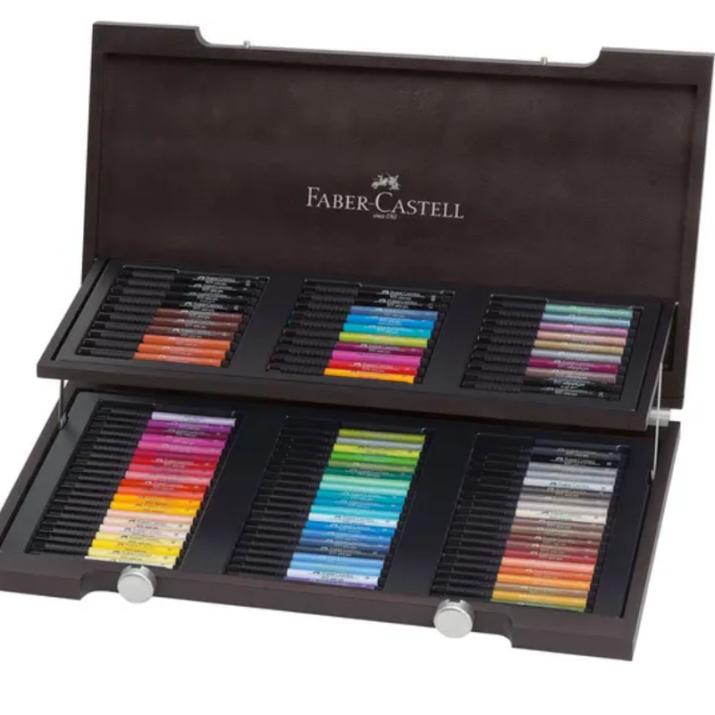 FABER-CASTELL Coffret en Bois de 90 Feutres Pinceaux Pitt Artist