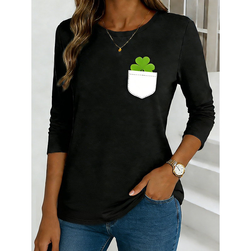 St. Patrick's Day Women's T Shirt Graphic Beer Fashion Stylish Classic Long Sleeve Crew Neck Round Neck Regular Tops Daily Weekend Print Black White Green Summer Spring Fall