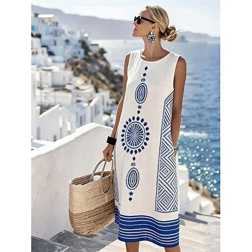 Per donna Abito Midi Abito a Tubino Vestito Estivo Abito a trapezio Vacanza Casual Boho Spiaggia Uscire Vestibilità comoda Grafico Geometrico Senza Maniche Girocollo Blu Giallo Rosa Rosso Estate