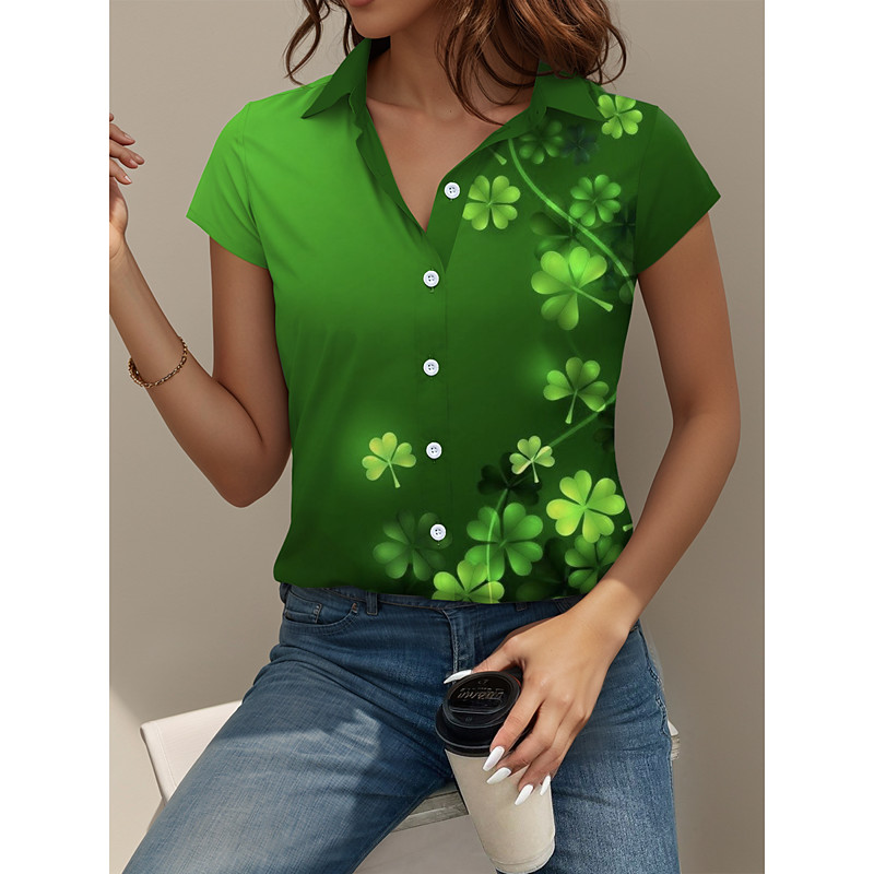 St. Patrick Women's Shirt Graphic Shamrock Daily Short Sleeve Cap Sleeve Shirt Collar Long Tops Daily Green Summer Spring