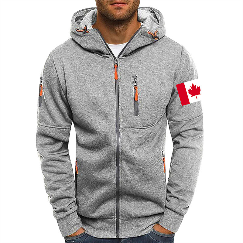 Men's Hoodie Full Zip Hoodie Blue Orange Brown Gray Hooded National Flag Sports Outdoor Daily Holiday Polyester Streetwear Cool Casual Spring Fall Clothing Apparel Hoodies Sweatshirts Long