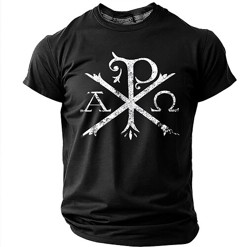 Herren Bibel Chi Rho Alpha Symbol Christogramm Christliche Bibel Religiös Vintage Abgerissenes T-Shirt Grafik Lässig Kurzarm Kirche Kleidung Designer Kleidung Apparel