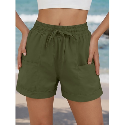 Damen Chinos Shorts Basic Lässig Kurz Hohe Taille Einfach Tasche Elastisches Kordelzugdesign Hoher Schnitt Atmungsaktivität Weich Mikroelastisch Alltagstauglich Wochenende Schwarz Rosa Leicht Grün