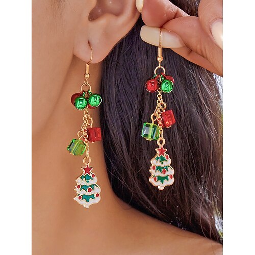 orecchini natalizi da donna – in lega con motivi natalizi a forma di albero, campane e fiocchi di neve, perfetti per feste e celebrazioni