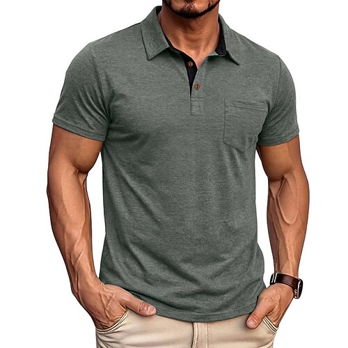 Per uomo Polo Maglia da golf Casuale Affari Bavero Manica Corta Moda Moderno Semplice Tasca Bottoni Tutte le stagioni Blu Nero Bianco Blu marino Verde Cachi Polo