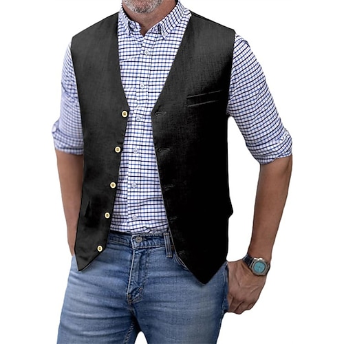 Per uomo Gilet Vacanza Feste Affari Moda Casual Primavera Autunno Tasca Bottoni 75% cotone Confortevole Semplice Monopetto Un Bottone Scollo a V Vestibilità regolare Argento Nero Bianco Champagne