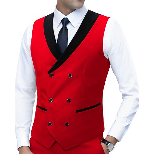 Per uomo Gilet Vacanza Feste Affari Moda Casual Primavera Autunno Tasca Bottoni Poliestere Confortevole Semplice Doppiopetto Scollo a V Vestibilità regolare Blu Nero Bianco Vino Gilet