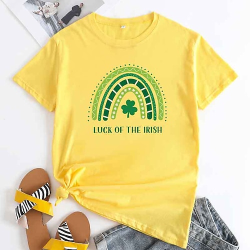 Per donna maglietta Cotone Arcobaleno Trifoglio Festa di San Patrizio Informale Nero Bianco Giallo Stampa Manica corta Di tendenza Rotonda Standard Primavera estate