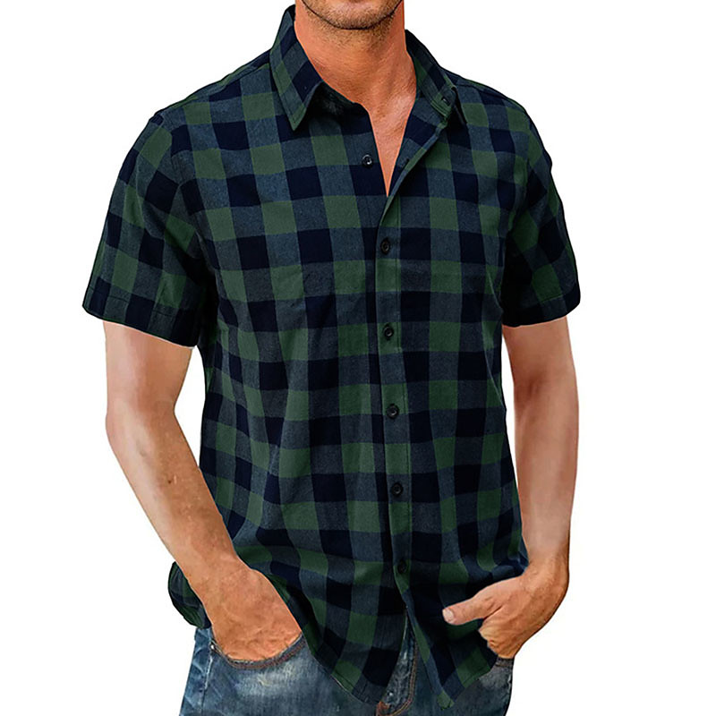 Men's Shirt Summer Shirt Casual Shirt Button Up Shirt Checked Shirts Blue Black Pink Red Dark Green Short Sleeve Plaid Lapel Vacation Street Print Clothing Apparel Fashion Leisure Hawaiian