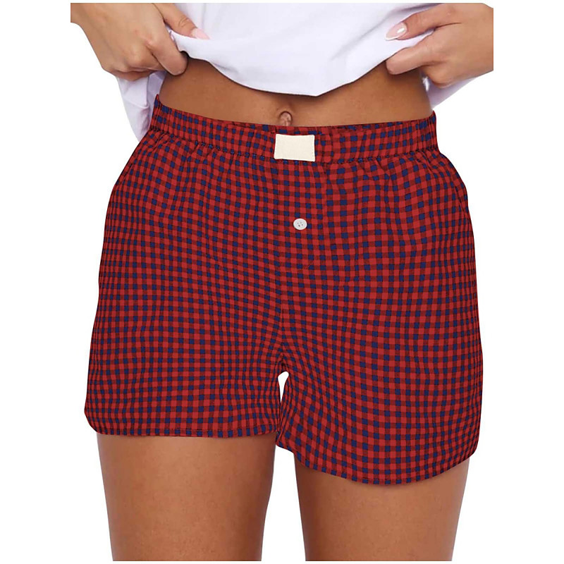 Women's Shorts Chinos Vacation Fashion Streetwear Short High Waist Plaid Pocket Elastic Waistband Printing Comfy Soft Comfortable Micro-elastic Outdoor Street Black Yellow Wine Green Summer Regular