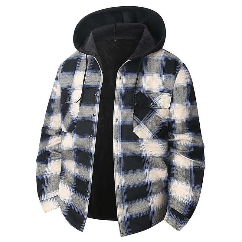 Men's Winter Coat Fleece Jacket Casual Jacket Casual Daily Thermal Warm Pocket Fall Winter Plaid Streetwear Daily Hooded Regular Blue White Red Orange Green Jacket