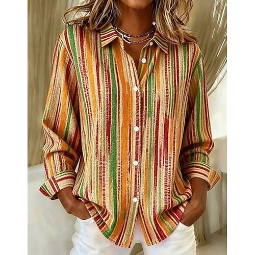 Per donna Camicia Blusa Grafico Geometrico Plaid Vintage Tropicale Quotidiano Manica Lunga Colletto a Camicia Top Regolari Quotidiano Patchwork Bottoni Stampato Blu Rosso Viola chiaro Viola Arancione