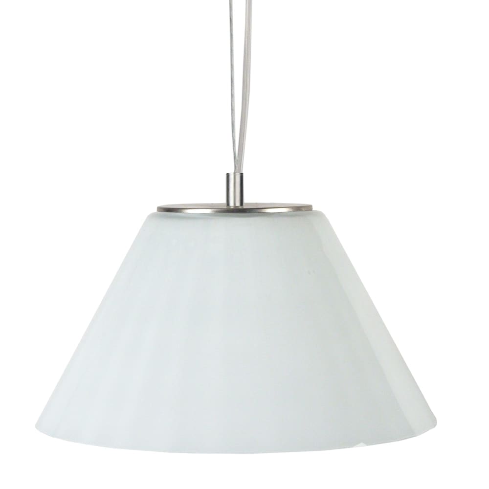 Sospensione vetro ; Alt.80cm aluminio ;Paralume: bianco