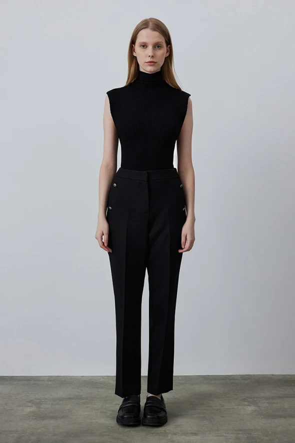 Gusto Womens Trousers With Buttons - Black - Size 14 Regular | Gusto Sale | Discount Designer Brands