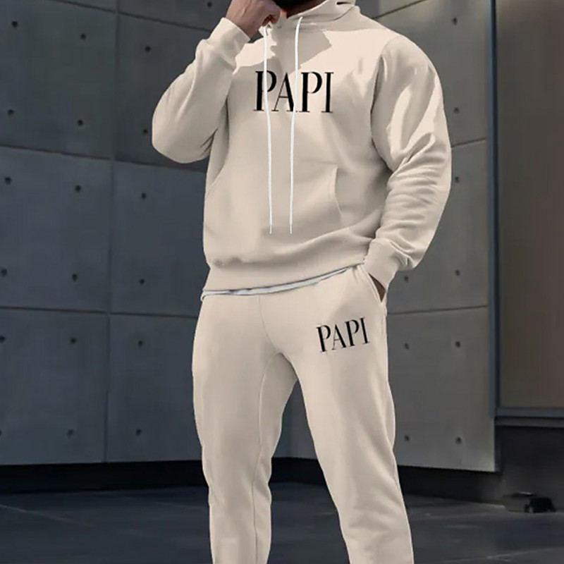 Men's Text / Number 2pcs 3D Sweatshirt Sets Tracksuit Hoodie Sweatshirt Long Sleeve Long pants Hooded Casual Daily Athleisure 3D Print Spring Fall Winter Brown
