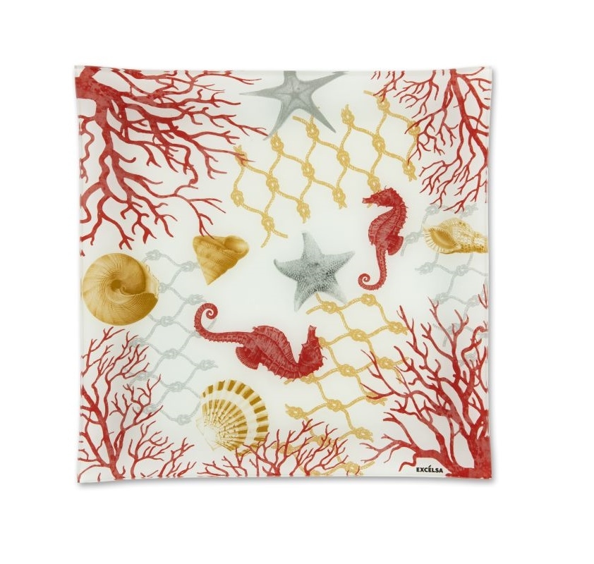 Excelsa Platte/Tablett Coral Glas 30x2,5x30 cm Bunt