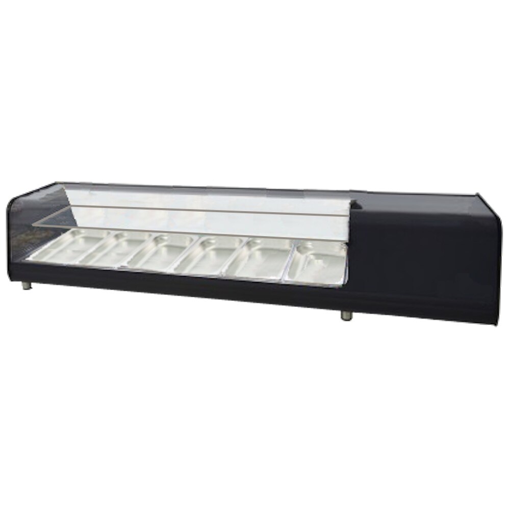 Gekühlte tapas-vitrine mit 6 gn 1/3 flachglas, 2 ebenen - 1455x400x300 mm - 160 W 230/1V - 13D65144 Eurast