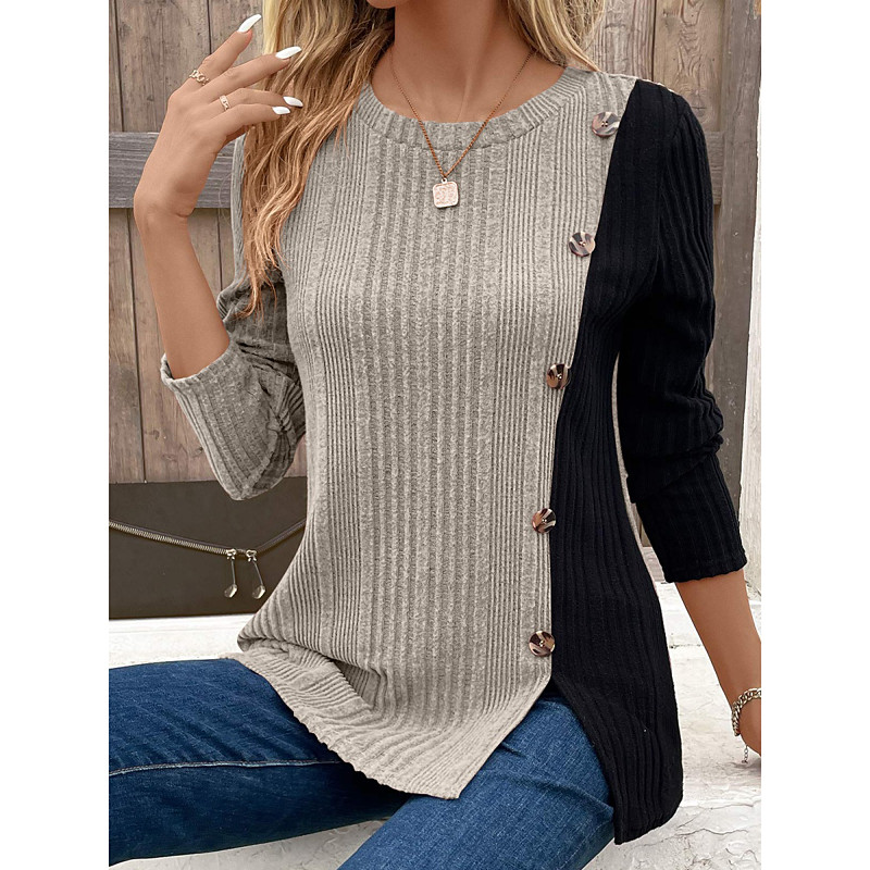 Women's Blouse Color Block Stylish Casual Long Sleeve Crew Neck Regular Tops Daily Ruched Buttons Light Green Wine Army Green Brown Khaki Spring Fall Winter