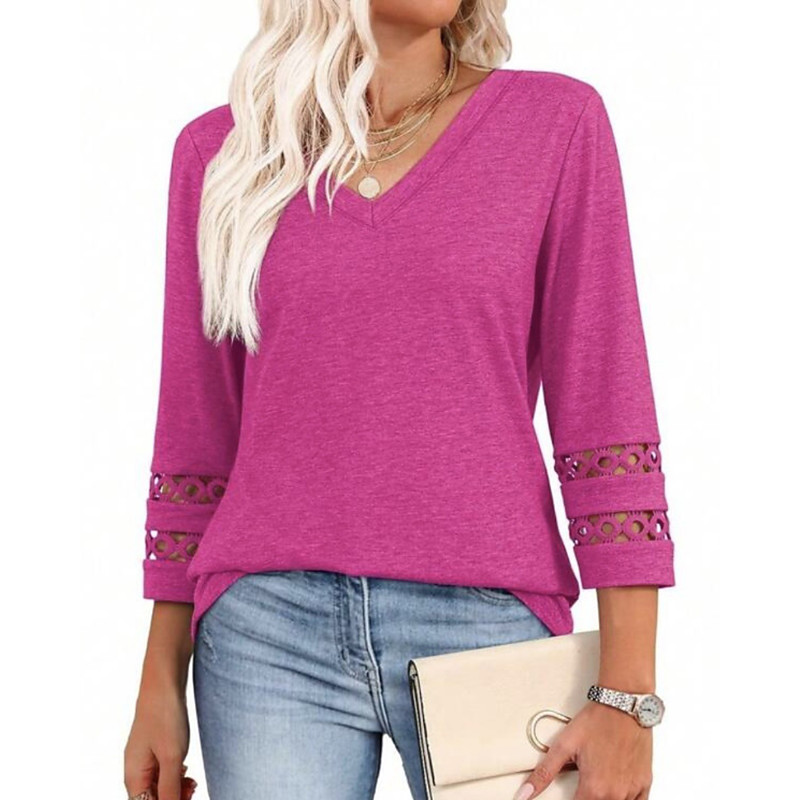 Women's T Shirt Plain Casual Long Sleeve V Neck Regular Tops Daily Going out Weekend Eyelet Blue Light Green Dark Green Purple Orange Summer Spring