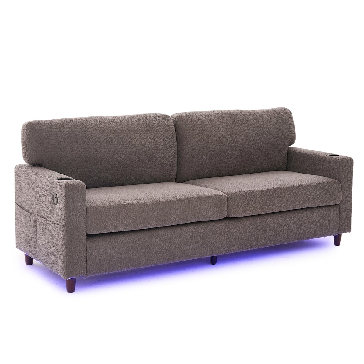 Merax 2-Sitzer Sofa, 2-Personen Chenille-Sofa mit USB-C, LED-Ambiente, Getränkehaltern und Seitentaschen, hellgrau
