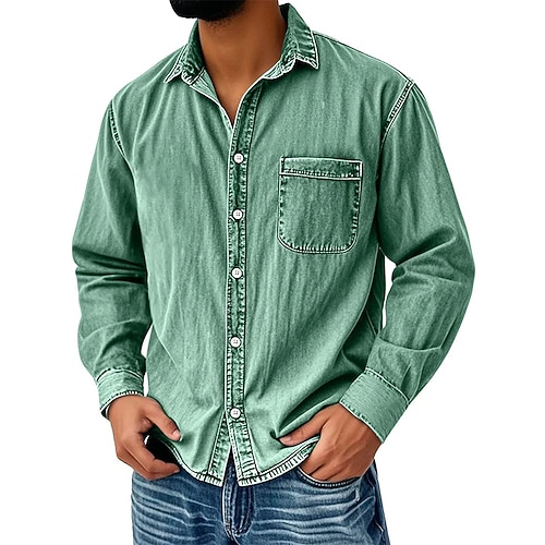 Per uomo Camicia Camicia casual Camicia vintage Camicia con Bottoni Nero Verde chiaro Vino Blu marino Blu Manica Lunga Semplice Bavero Uscire Abbigliamento casual alla moda Tasca Abbigliamento Moda