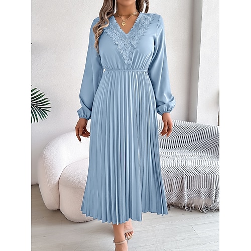 Per donna Abito maxi Abito a trapezio Casual Quotidiano Vestibilità regolare Semplice Manica Lunga Scollo a V Vino Blu marino Marrone chiaro Blu Primavera Autunno Inverno