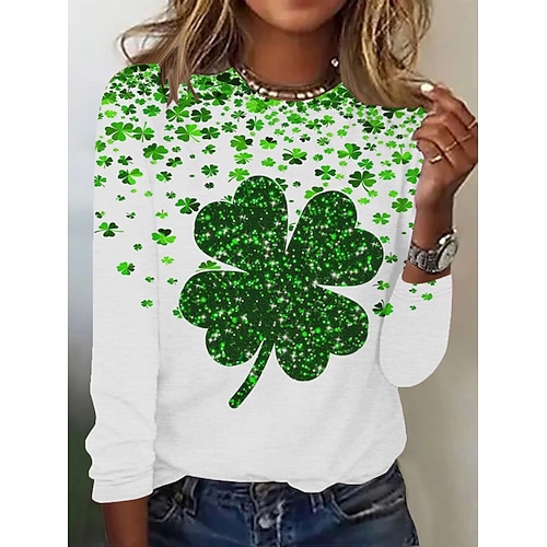 Festa di San Patrizio Per donna Maglietta Grafico Trifoglio Bicchiere di vino Moda Elegante Classico Manica Lunga Girocollo Top Regolari Quotidiano Weekend Stampato Bianco Verde scuro Verde Estate