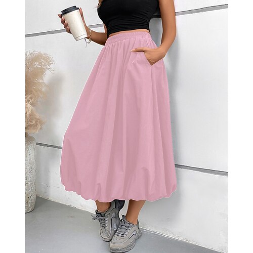 Per donna Gonna Moda Casual Midi Vita media Gonne Semplice Arricciato Tasca Micro-elastico Quotidiano Streetwear blu navy Bianco Rosa Vino Estate Nylon Poliestere