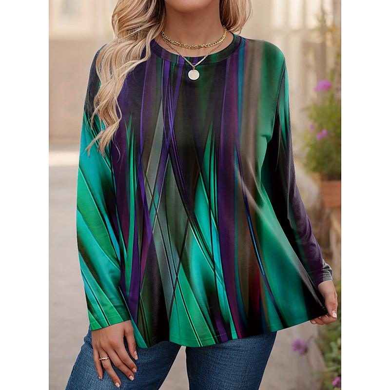 Women's Plus Size Tops T Shirt Geometry Print Long Sleeve Crew Neck Casual Daily Polyester Fall Winter Pink Red