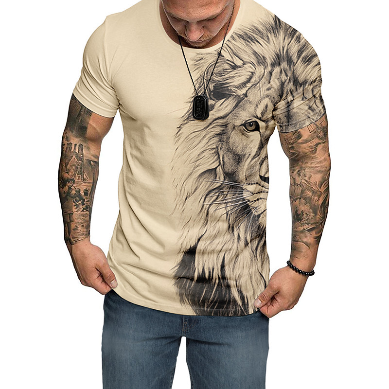 Men's Graphic Animal Lion Short Sleeve T shirt 3D Print Crew Neck Shirt Daily Outdoor Casual Party Casual Holiday Light Green Blue Sky Blue Spring Summer Clothing Apparel Normal S M L XL XXL XXXL