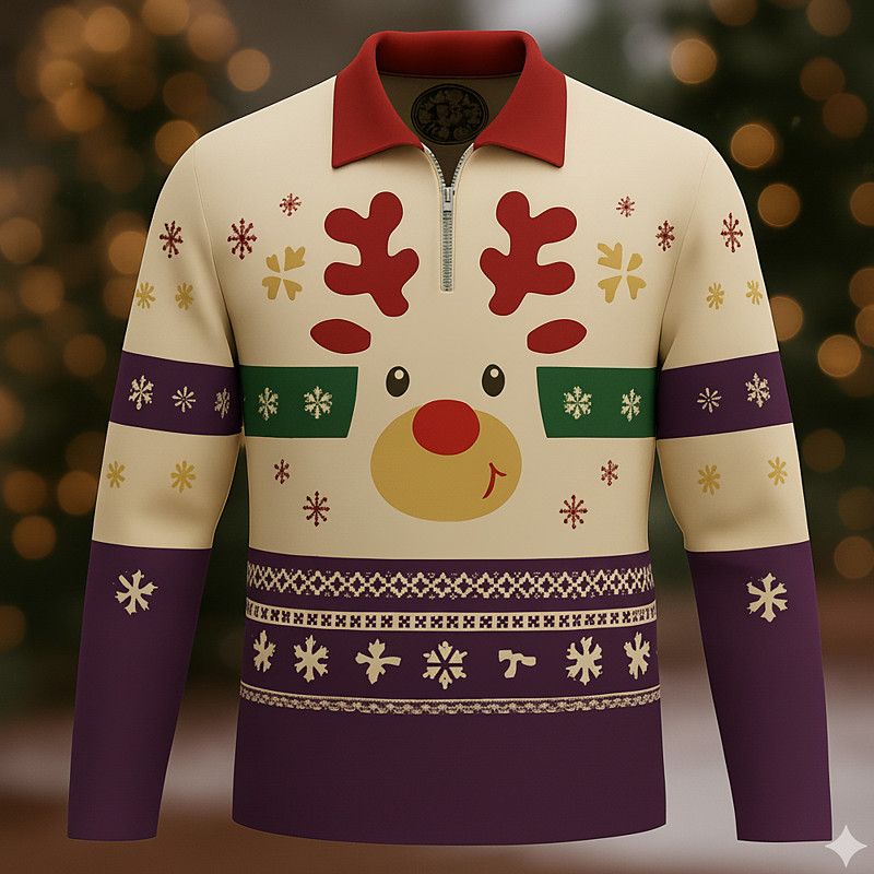 Christmas Men's Christmas tree 3D Zipper Polo Xmas Golf Floral Turndown Red Blue Purple Brown Green 3D Print Street Casual Long Sleeve Zipper Print Clothing Apparel Fashion Designer Casual