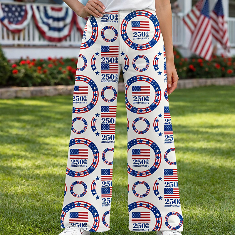 American 250 Retro Vintage 1970s Pants Wide Legged Pants Hippie Disco High Waist Fancy Dress Women's Masquerade 4th of July Independence Day Semiquincentennial Adults' Pants
