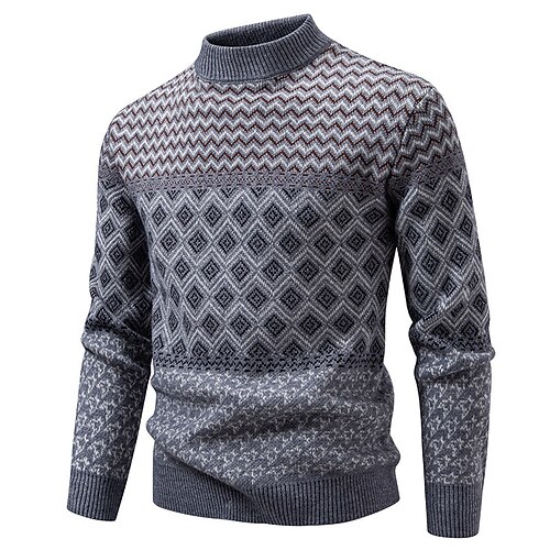 Per uomo Felpa Maglione Maglione Fair Isle A Coste Maglia Top Regolari Lavorato a maglia Slim Fit Semplice Collo Alto Maglieria Moderno Contemporaneo Casuale Abbigliamento quotidiano Abbigliamento