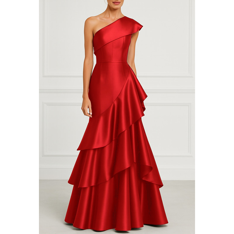 A-Line Floor Length Prom Dresses Evening Gown Ball Gown Formal Dress Elegant Sleeveless One Shoulder Wedding Formal Satin with Ruffles