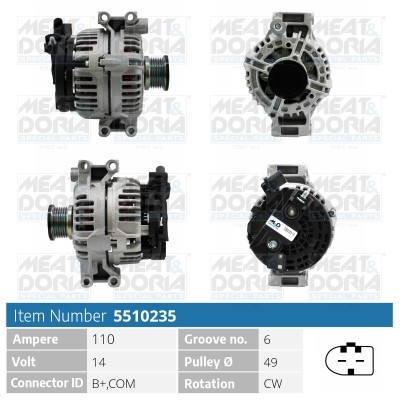 Laturi 14V 110A Meat & doria 5510235 - bmw - OE 12317521382, 12317521383, 12317521488