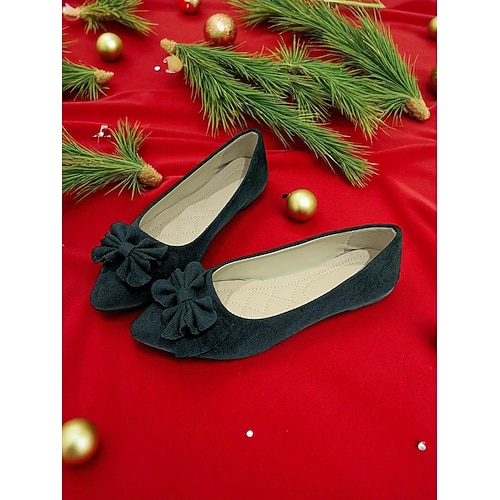 ballerine da donna con fiocco in elegante stile natalizio, perfette per outfit da festa e riunioni festive
