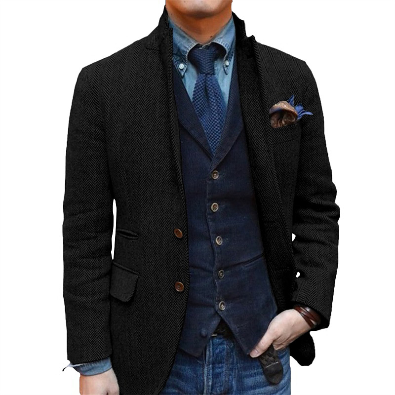 Men's Retro Vintage Tweed Blazer Herringbone Wool Blazer Sport Coat Regular Plus Size Single Breasted Two-buttons Black Champagne Burgundy Blue