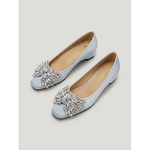 Ballerine da donna color champagne con tacco basso e zeppa nascosta – eleganti décolleté decorate per la madre della sposa, perfette per matrimoni in città. eventi formali
